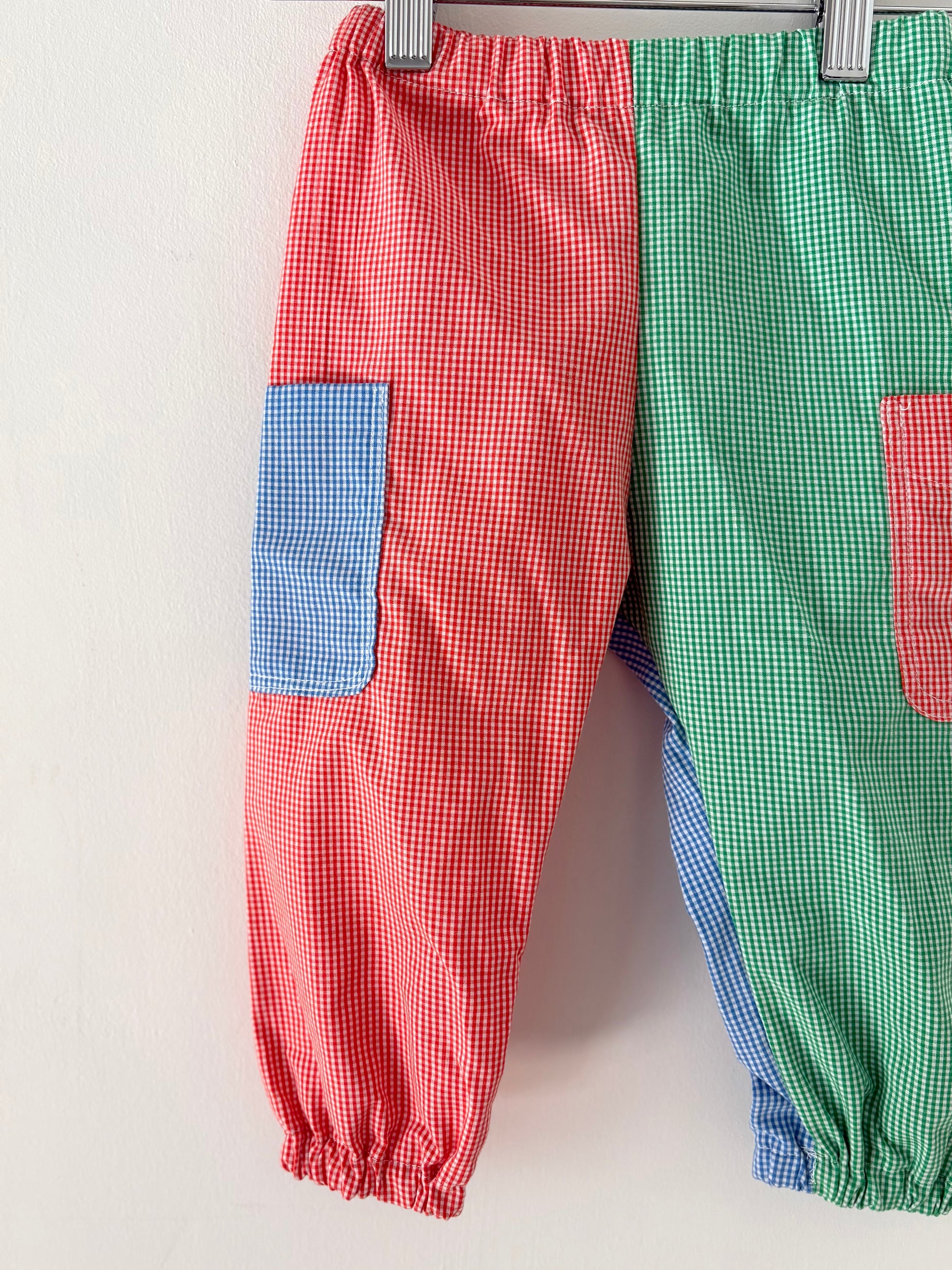 Hand-sewn Upcycled Color Block Gingham Pocket Joggers Size 18-24 months